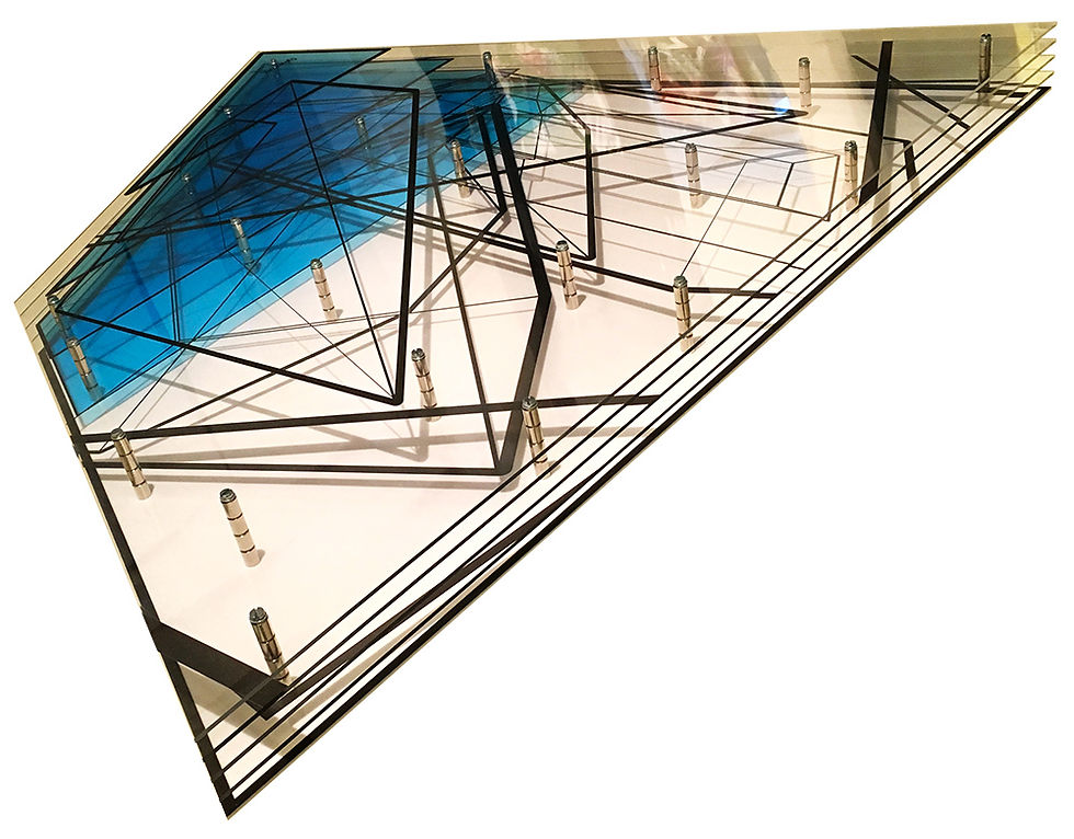 A series of 9 limited edition prints that depict simple abstract forms starting with a tilted cube. The forms are filled with a liquid which finds its own level, providing reference for the viewer to perceive the tilt. In doing so this plane creates a contour within the tilted object, revealing a greater sense of its 3-dimensional nature.
